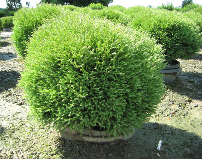 Карликовый шаровидный хвойный кустарник с ажурной кроной. Диаметр растения не превышает 0,9 м. В 10-летнем возрасте диаметр не более 0,7 м. Не требует стрижки для сохранения идеальной шарообразной формы долгое время. Хвоя нитевидная, серо-зеленая, мягкая, кружевная. Сохраняет свой цвет в зимний период, со слегка бронзовым оттенком. Предпочитает солнечные места, умеренно влажные, хорошо дренированные почвы. Рекомендована обрезка в начале весны или в середине лета для формирования формы идеального шара